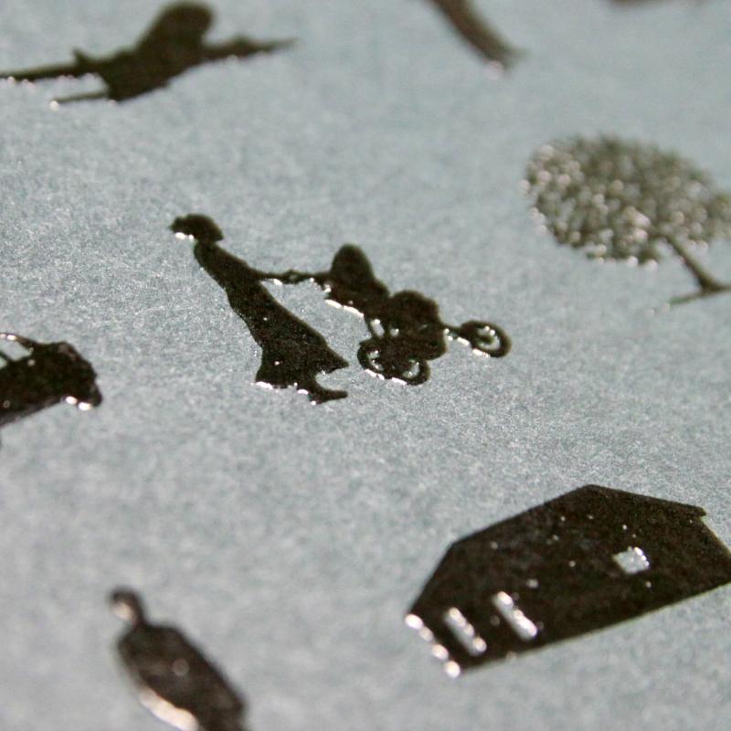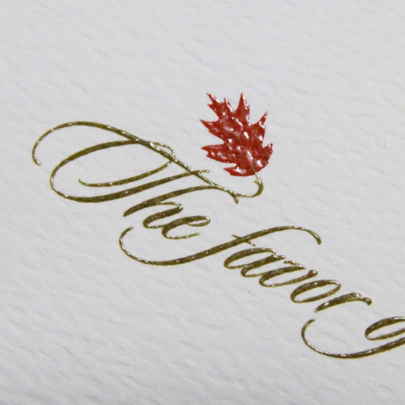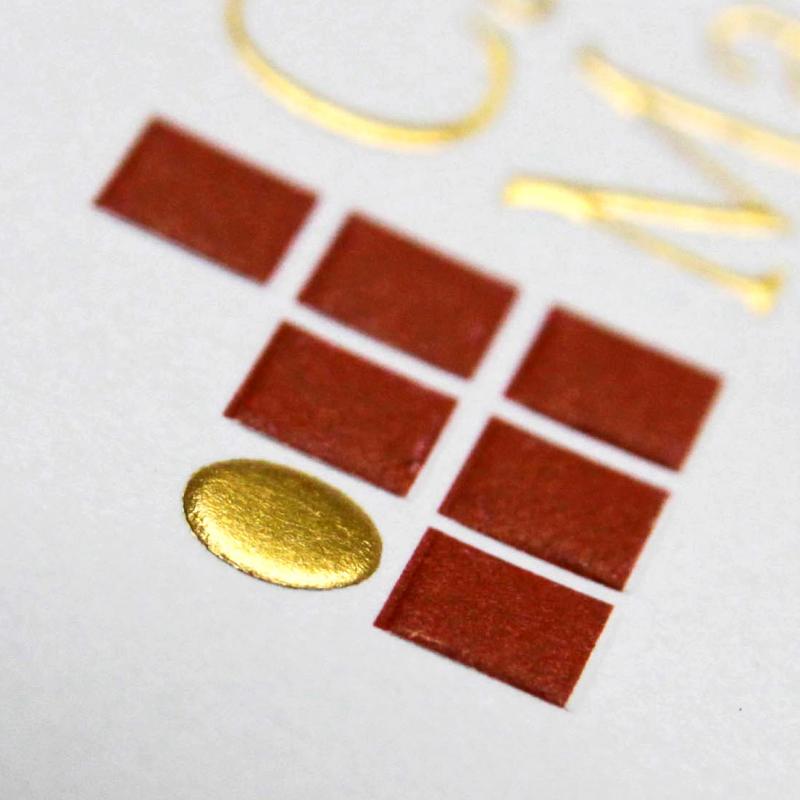 ABOVE, FOIL STAMPING SAMPLES. Click on magnifying glass on lower right of each image, to enlarge.